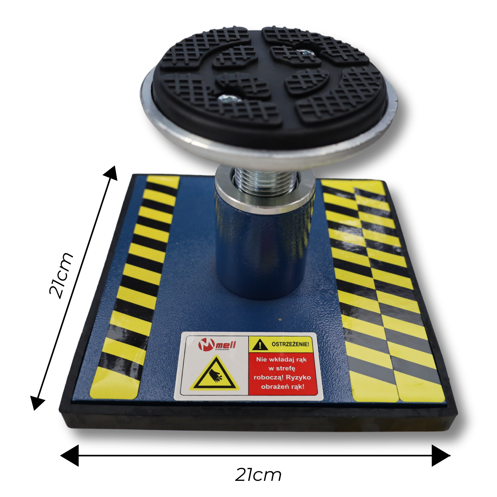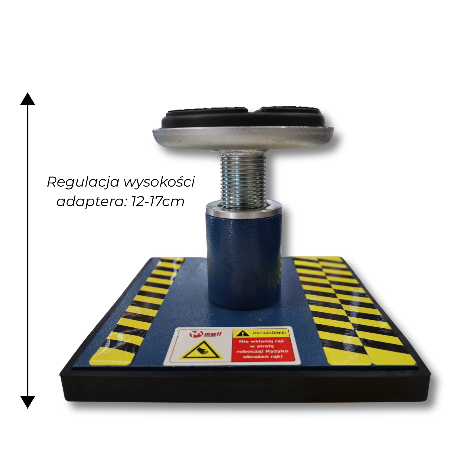 Stalowe podstawy wyposażone są w gumowy podkład, który chroni platformę podnośnika przed zarysowaniami oraz zwiększa stabilność podczas pracy. Rozwiązanie dedykowane do zastosowań warsztatowych i serwisowych.