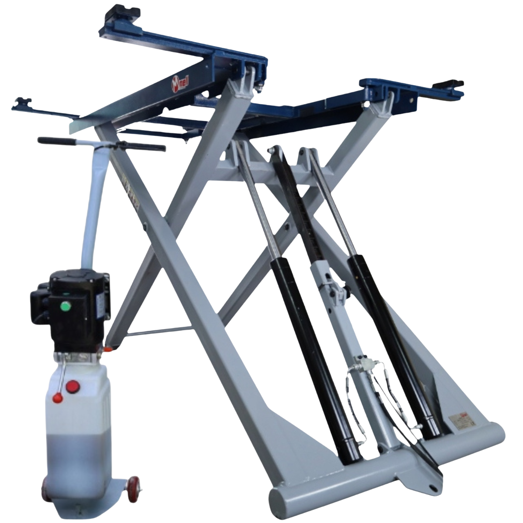 Podnośnik jest solidnej konstrukcji, posiada dwa siłowniki, oraz regulowane łapy. Kolejną z jego zalet jest mobilność, dająca możliwość pracy z każdego miejsca w Twoim warsztacie.