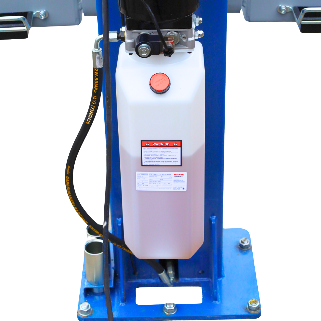 Za płynne i stabilne podnoszenie odpowiada podwójny system siłowników hydraulicznych, wspierany przez synchronizację na stalowych linach oraz systemie łańcuchowym. Elektromagnetyczne zwalnianie blokad oraz automatyczna blokada ramion zwiększają bezpieczeństwo podczas pracy.