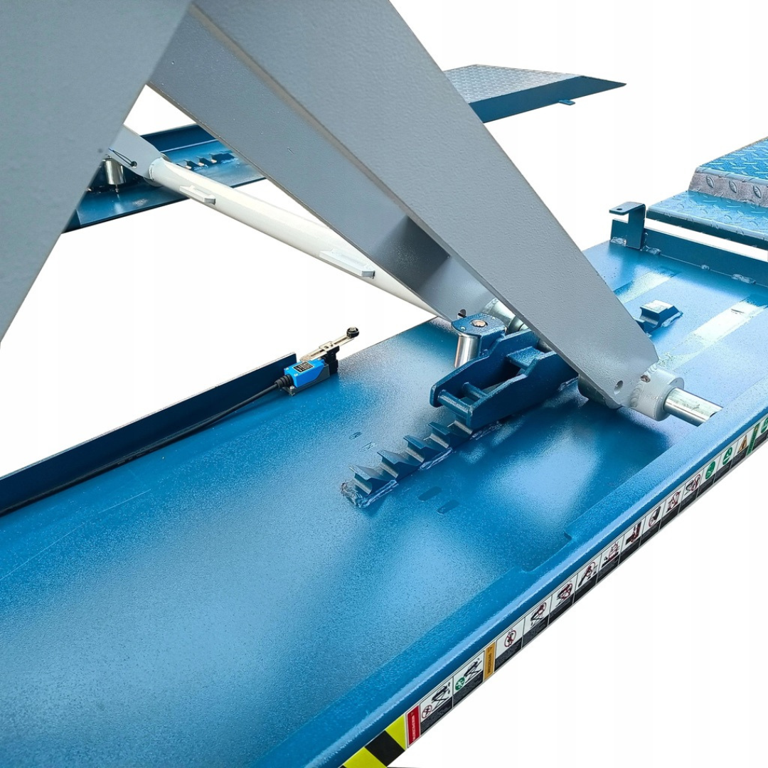 Mobilna konstrukcja i dołączone kółka pozwalają na łatwe przemieszczanie podnośnika w obrębie warsztatu, co zwiększa jego wszechstronność i wygodę użytkowania. Automatyczny system opuszczania oraz elektrozapadkowy mechanizm blokady (niewymagający sprężonego powietrza) gwarantują bezpieczeństwo i prostą obsługę. Dodatkowo, możliwość zablokowania najazdów w pozycji poziomej pozwala na wydłużenie platformy, co zwiększa elastyczność zastosowania podnośnika.