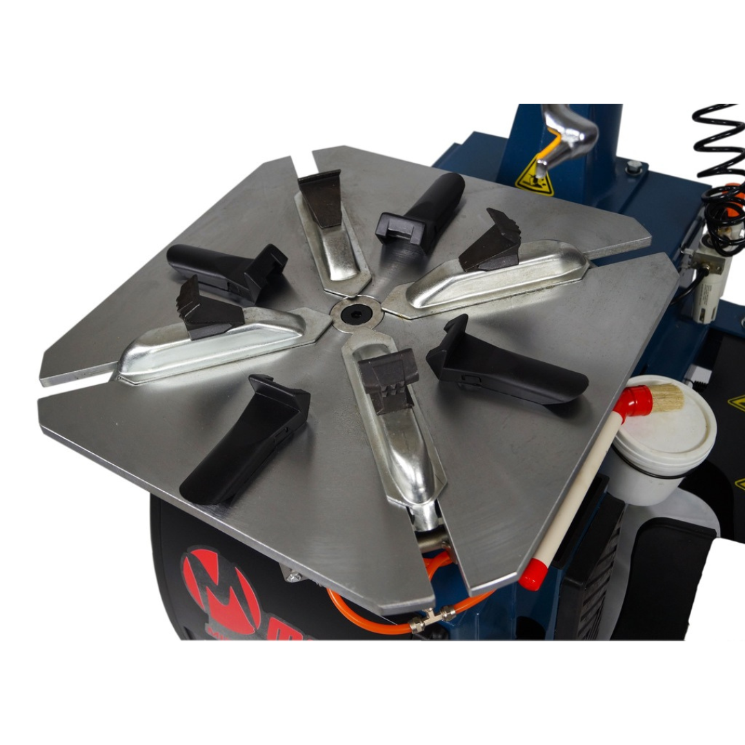 MIRELLO WRS 300 to podstawowy model montażownicy do obsługi kół samochodów osobowych i lekkich dostawczych. Maszt odsuwany jest ręcznie na bok, a głowica blokowana ręcznie przy pomocy dźwigni z mimośrodem. Konstrukcja masztu maszyny jest sztywna co uzyskano poprzez zastosowanie odpowiednich profili. Czteroszczękowy uchwyt zapewnia mocne, samocentrujące mocowanie felgi.